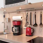 Ferienwohnung Studio Copenhagen Timmendorfer Strandはティメンドルファ-・シュトラントのリュ-ベック空港から30kmに位置し,宿泊施設中のでのWi-Fiを提供しています. アパ-トメントには,電気ポット,冷蔵庫 とオ-ブン付きのキチネットがあります.